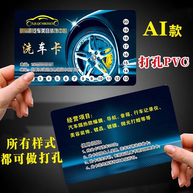 定做洗车卡制作会员卡次卡塑料名片10次打孔 纸质pvc设计次数卡热门设计联盟服务商