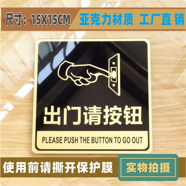 亚克力出门请按钮标志牌开么钮请按门铃提示牌请随手关门标识牌热门设计联盟服务商
