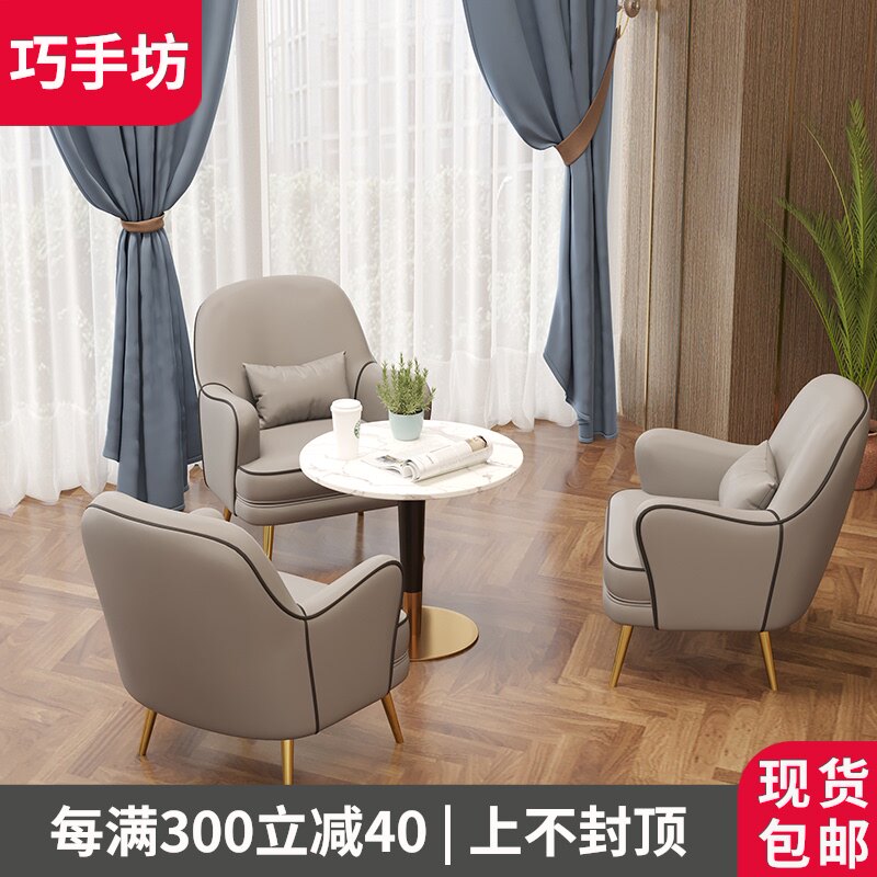 北欧轻奢会客区沙发简约现代售楼处部洽谈桌椅组合商务接待小圆桌热门设计联盟服务商