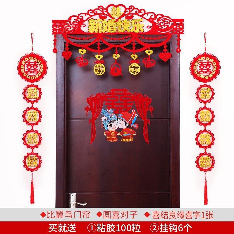 门帘婚庆拉花婚房新房布置婚礼装饰结婚无纺布喜字门贴墙贴对联热门设计联盟服务商